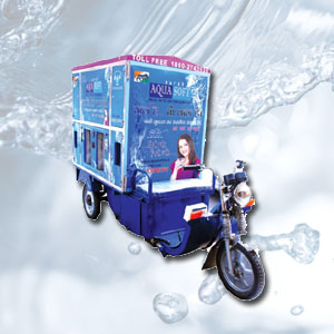 Clean AND affordable water on the go, SARAH AQUASOFT We are the one of first and the best manufacturer for MOBILE VENDING MACHINE (E-RICKSHAW WATER ATM) in the Indian market and the leader in Mobile Water Vending Machine business startups. We design our machine to be low maintenance and high-performance scale. Our engineer in-build an Isolated stainless steel water container on modern E-Rickshaw which is going the remote area, market and other public place and can sell purified RO water an affordable cost for the public.